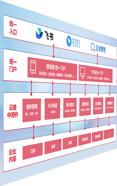 对协作平台提供支持服务,,支持企业应用与协作平台对接,,包含组织同步、、、、消息集成、、、待办集成等。。。。支持目前主流的协作平台:钉钉、、企微和飞书。。。。